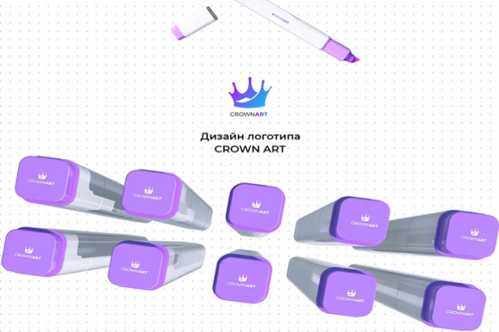 Основной идеей в построения дизайна логотипа было использование символа короны и небольшого намека на творчество, а именно основной продукт - художественную кисти.
