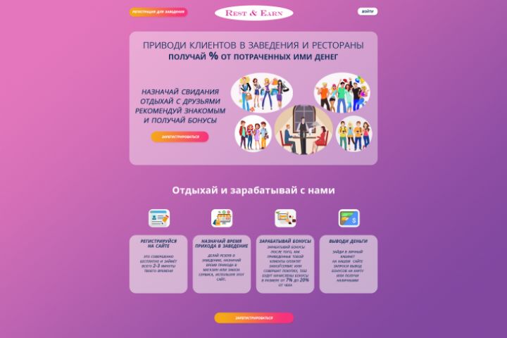 Цель сайта не просто рекламная, а больше функциональная, по работе с клиентами и заведениями, сайт состоит из 14 страниц, кабинета администратора, личных кабинетов как клиентов, так и заведений.