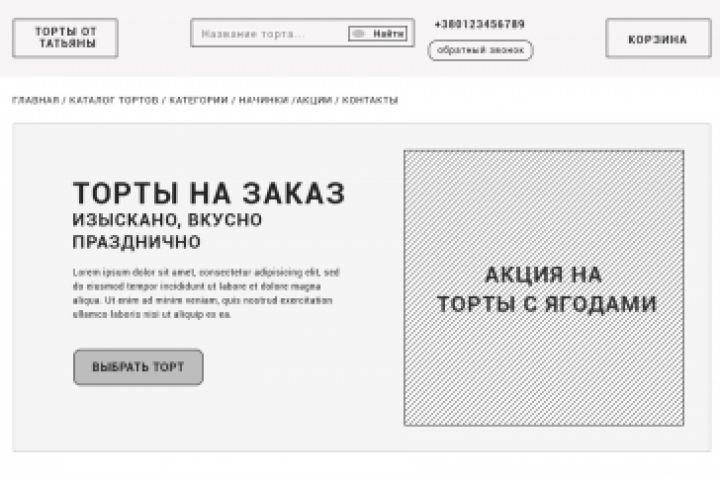 Прототип для интернет-магазина Торты от Татьяны