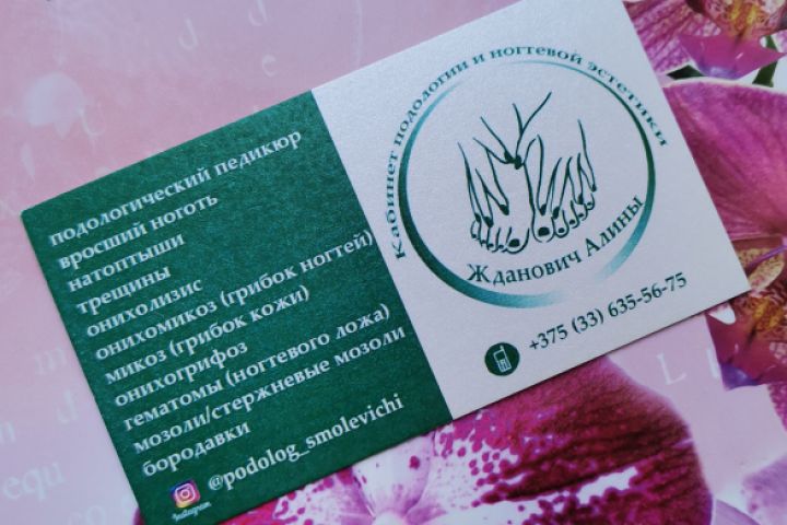 Разработка визитки для специалиста подолога, со всеми личными пожеланиями.