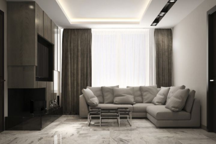 3d визуализация гостиной в современном стиле