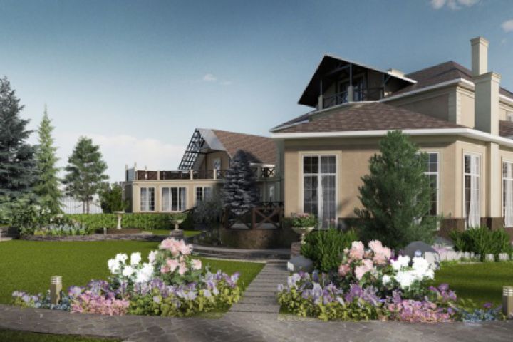 3д визуализация загородного дома и ландшафтного дизайна