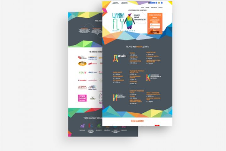 Был разработан лендинг для студии WannaFly на основе существующего дизайна.Так же была сделана адаптивная верстка. Были задействованы следующие технологии: CSS3, HTML5,Bootstrap,JavaScript,JQuery, Google Maps API.