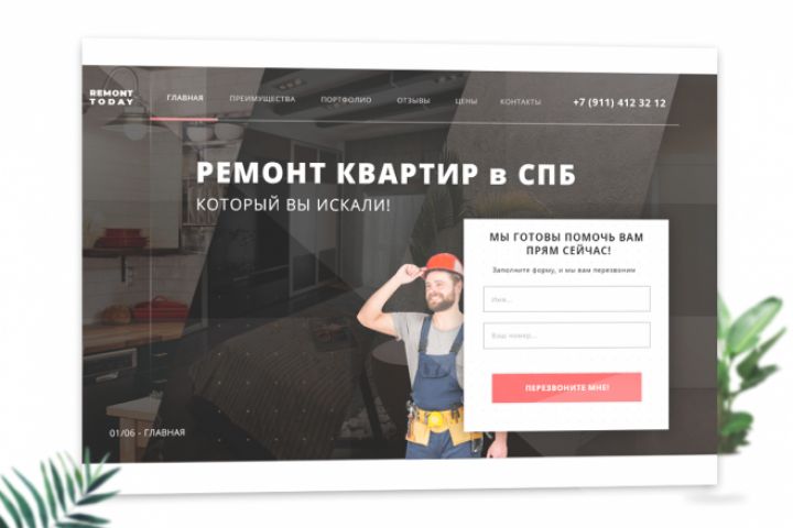 Сделал дизайн для компании по ремонту квартир в городе Санкт-Петербург. Для этого я выбрал спокойный серый цвет вместе с белым, что даст ощущение спокойствия и уверенности. С первого же экрана мы заявляем об открытости: улыбка на лице человека, а так же возможность оставить онлайн заявку с фразой "Мы готовы помочь прямо сейчас" - это помогает показать клиенту, что он ВАЖЕН.