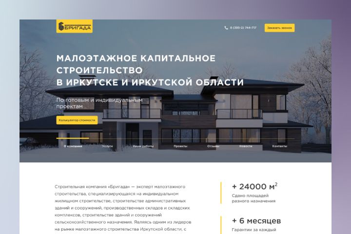 Редизайн сайта для строительной компании "Бригада". Стояла задача создать легкий и лаконичный дизайн с удобной навигацией. "Бригада" — эксперт малоэтажного строительства, специализирующаяся на индивидуальном жилищном строительстве, строительстве административных зданий и сооружений, производственных складов и складских комплексов, строительстве зданий и сооружений сельскохозяйственного назначения.
