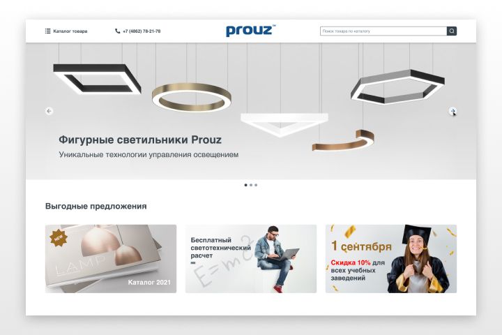 Редизайн корпоративного сайта для производителя осветительного оборудования Prouz. Заказчик хотел получить минималистичный сайт светлых тонах