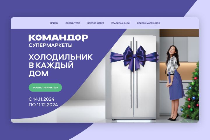 Лендинг под акцию "Выиграй холодильник" торговой сети Командор