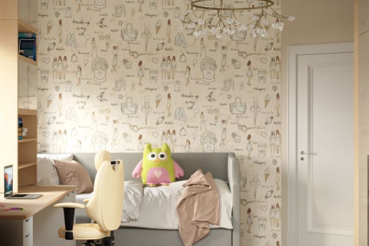 Была идея создать дизайн для детской комнаты, также необходимо было добавить рабочее пространство, что было реализовано и согласовано с заказчиком.