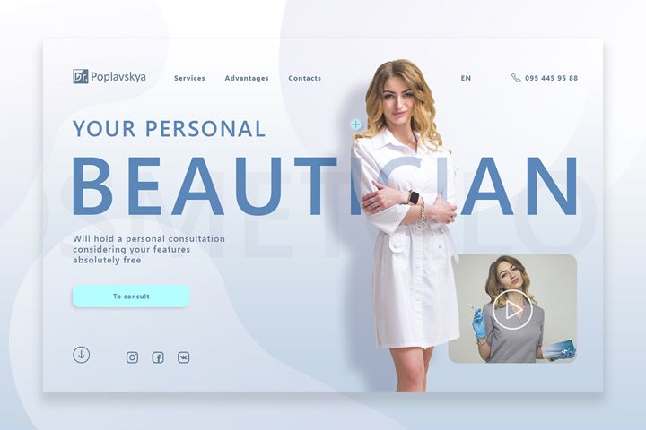 При создании дизайна лендинга нужно было отразить образ не просто специалиста в области бьюти-индустрии, а именно врача, вызывающего доверие.