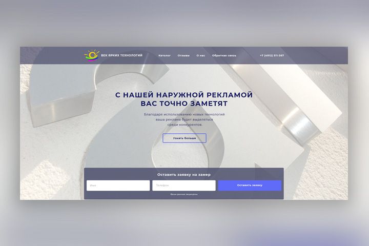 Посадочная страница для рекламной компании ВЕК ЯРКИХ ТЕХНОЛОГИЙ в г. Рязань.