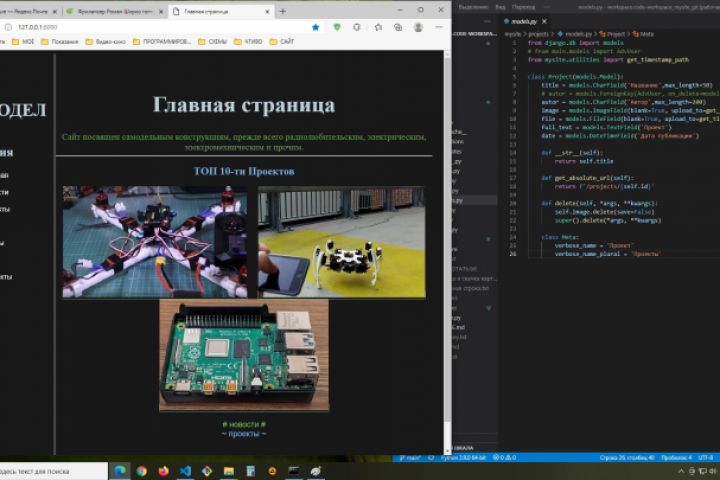 Около года пишу сайт по тематике Хобби (самоделки, электроника) в нерабочее время. В меню есть Новости, Проекты, Фотографии, Файлы, Блог и другие приложения (см. скриншот). Пока локальный впоследствии собираюсь опубликовать на хостинге. Файлы есть в репозиториях Git - Сайт mr-romon