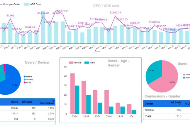 Аналитика включает в себя настройку целей и событий Яндекс метрики и Google Analytics, рекомендации по оптимизации интерфейса и логике работы продающей формы или страницы.