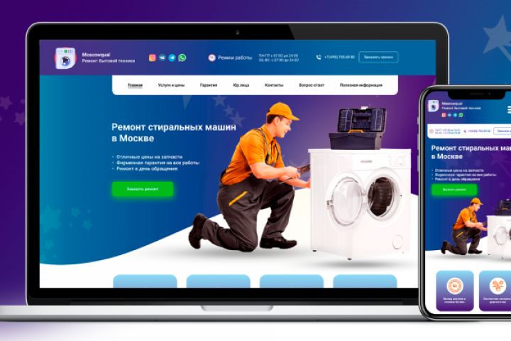 1) Разработать полноценный сайт по ремонту стиральных машин в Москве и вызова мастера.