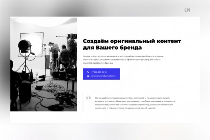 Наша задача состояла в том, чтобы создать продающее коммерческое предложение для студии. Мы сделали приветливый яркий дизайн, привлекающий внимание пользователя.