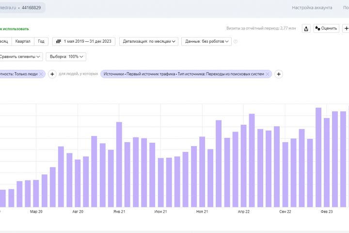 Достижения: х12 рост трафика. Один из наиболее популярных тематических магазинов. Внедрена мультирегиональность, собираются заявки со всей России. Разработан дизайн и верстка для новой версии сайта, обеспечен плавный переезд без потери позиций и трафика.