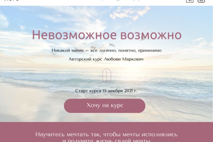 Лендинг для эксперта для записи на авторский обучающий курс. На сайте реализован переход на мессенджеры. Подключена форма обратной связи. Адаптивы под все расширения.