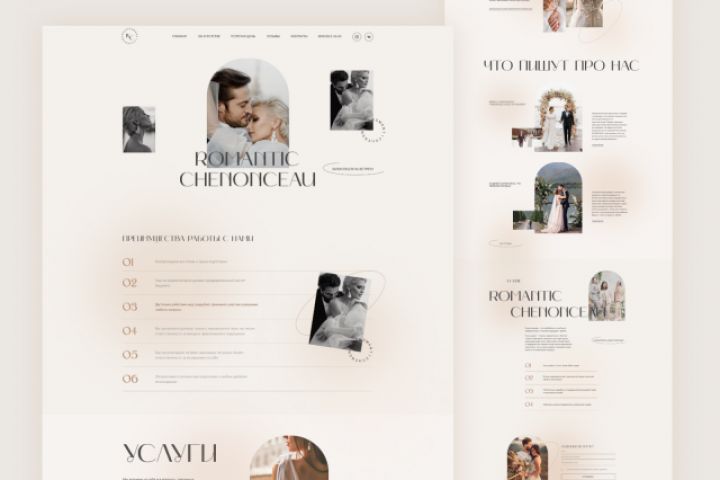 Разработать понятную структуру сайта с уникальным дизайном. Показать преимущества свадебного агентства, услуги и отзывы. Клиенту должно быть удобно оставлять заявку.