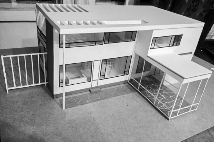 Макет дома Вальтера Гропиуса для студента на отметку "отлично". Выполнено из бумаги + прозрачный пластик.