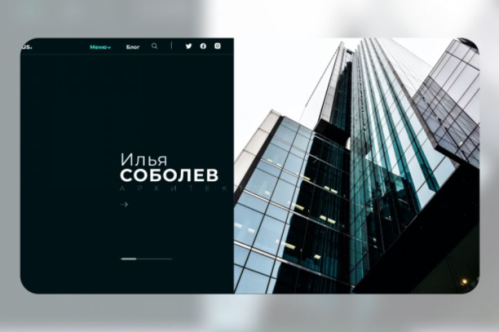 Заказчик хотел выделиться и показать все свои лучшие и масшатбные работы которые были так же построены и в Эвропе. По вверх окон с работы был нанесен блюр и небольшой текст описание, но при нажатии вы попадаете на новую страницу со всем описанием и данными всего дома.