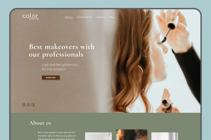 Color ____________ Задача: разработать стильный, минималистичный дизайн сайта студии красоты, в пастельных тонах. Работа: Figma, Photosop.