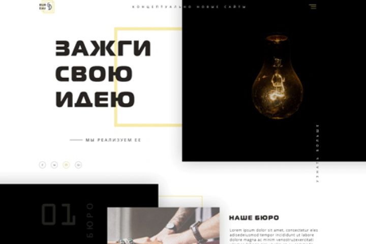 Дизайн Бюро, домашняя страница для креативной и яркой студии занимающейся разработкой концептуально новых сайтов, с новым подходом и реализацией идей.