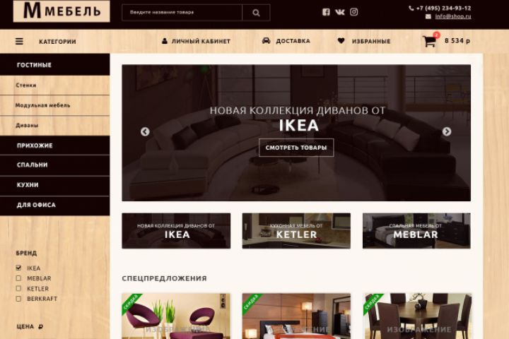 Дизайн интернет магазина (e-commerse)для компании занимающееся продажами мебели от именитых брендов. Дизайн: Flat-стилистика, Apple approuch