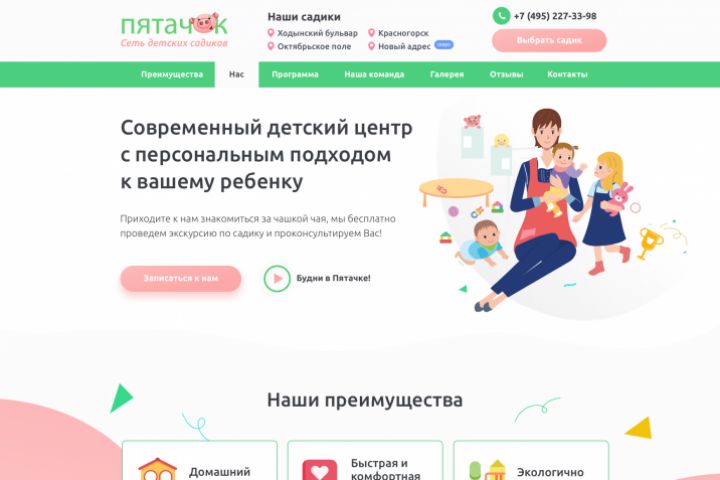 Lending page для сети детских садов "Пятачек". Задача проекта полный редизайн действующего сайта и привлечение новых заинтересованных пользователей.
