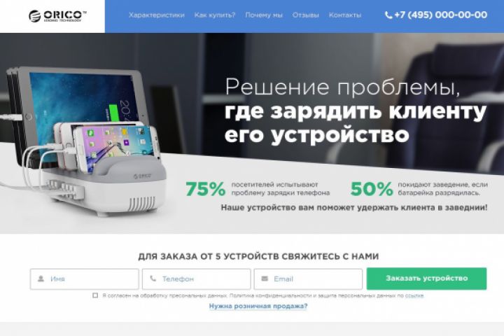 Lending page для официального представителя устройств ORICO в России. Лендинг для оптовых продаж продукции компании.