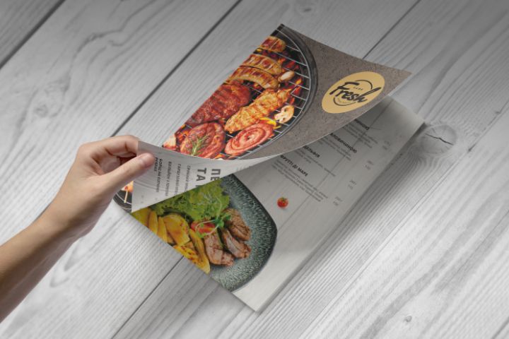 Итог: За основу взялась деревянная текстура. Для ощущения лёгкости пришлось отказаться от фотографий каждого блюда.