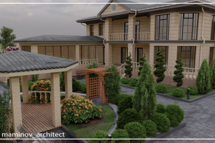 Проект жилого дома 650 м2 В классическом стиле, фасад выполнен из натурального камня травертин .