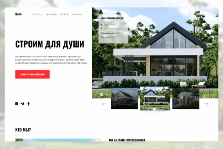Разработка главной страницы и страницы товара для строительной компании Build.,