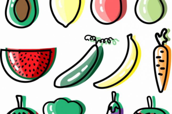 Сэт овощей и фруктов в дудл стиле