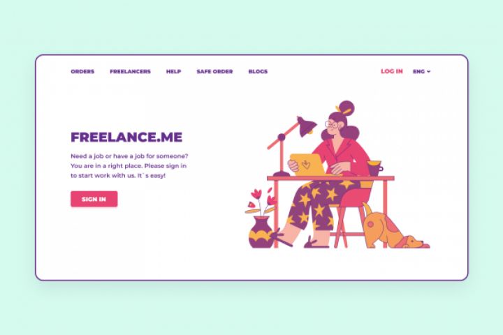 Цель проекта - создать первый экран для иностранной фриланс биржы, основаный на илюстрации,
