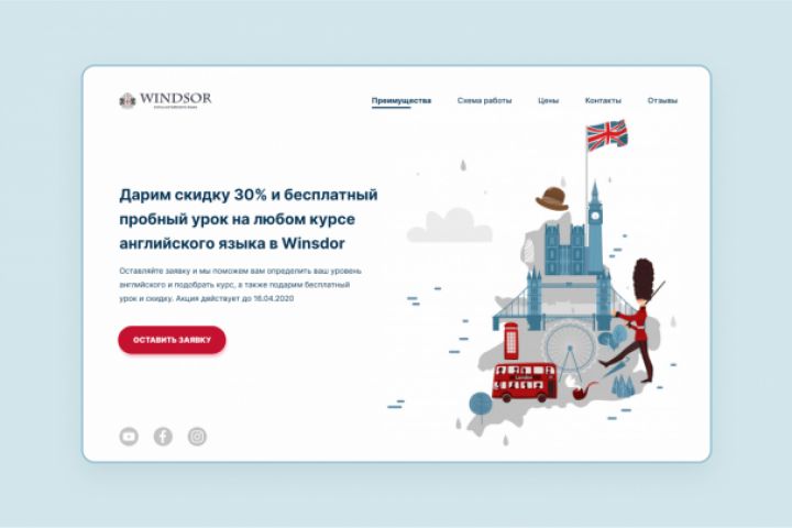 для объемного одностраничного сайта московской школы английского языка Winsdor.