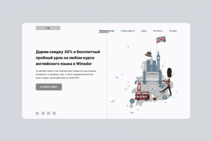 для объемного одностраничного сайта московской школы английского языка Winsdor.