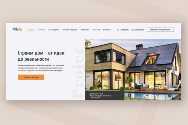 Мне особенно нравятся сайты со спокойными пастельными оттенками, поэтому здесь решила поиграться с этим. Задача данного проекта, дизайн многостраничного сайта для строительной компании.