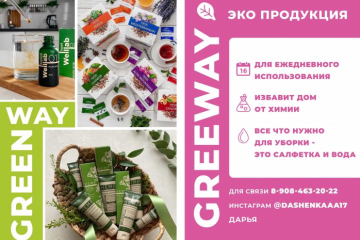 Двухсторонняя листовка для продукции GreenWay, задача была сделать ярким и читабельным)