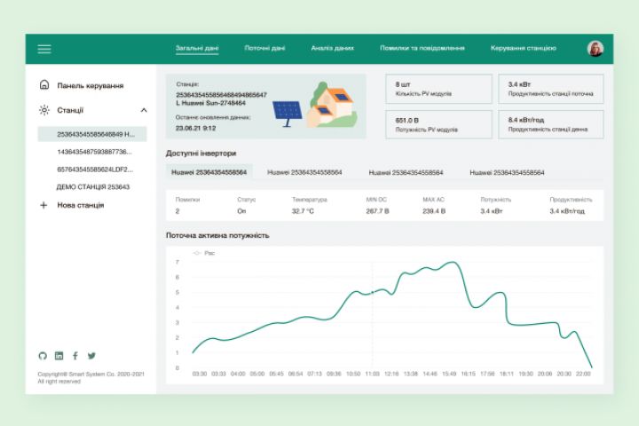 Интерфейс веб-панели для управления солнечными станциями