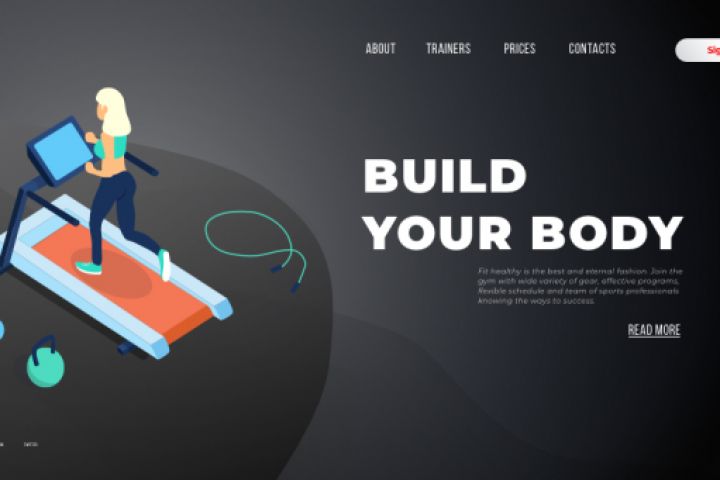 Цель: Создать лендинг для спортзала с использованием изометрических векторных изображений. Изображения также выполнены мною.