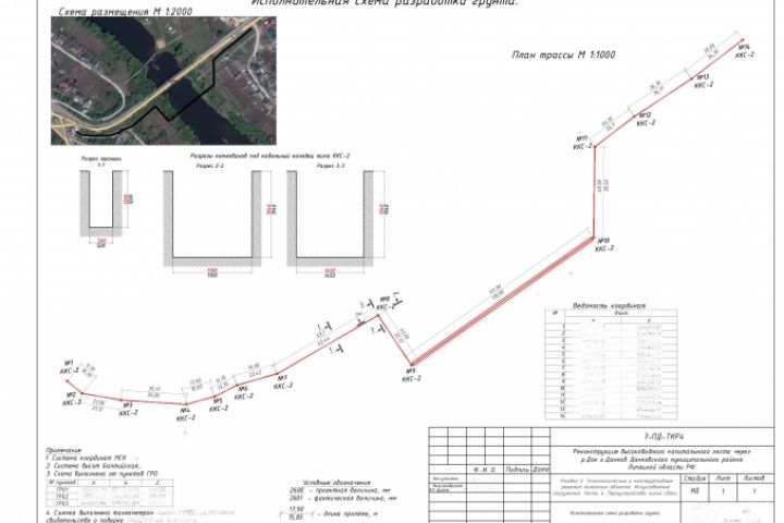 Исполнительная схема разработки траншеи для прокладки трубопровода. Срок выполнения: 3ч-1дн при предоставлении заказчиком всех исходных данных(проект\рд, геодезическая съемка).