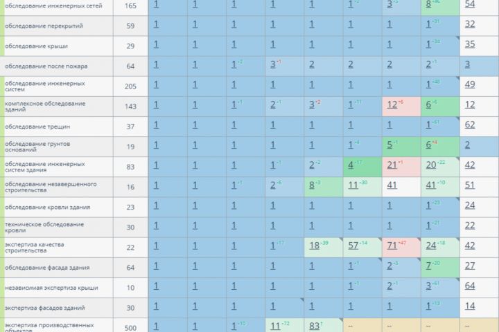 Позиции SEO продвижения проекта. Актуальные по запросу.