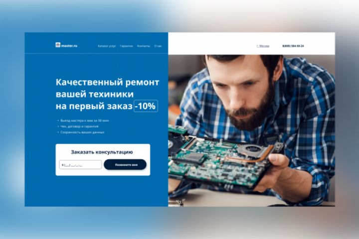 Одностраничный сайт для компании по ремонту компьютеров и других гаджетов.