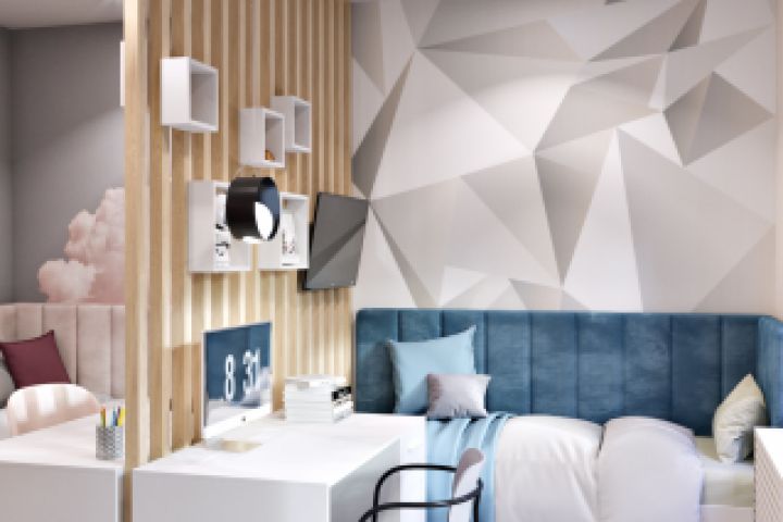 Один из ракурсов моего дизайн-проекта детской комнаты для девочки и мальчика. Все работы есть на моём сайте!