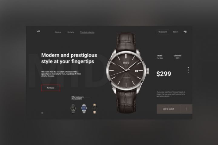 Стильный минималистичный и немного брутальный дизайн для мужских часов.