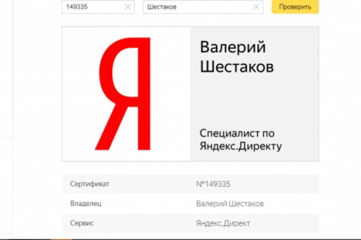 Сертификат Яндекс Директ