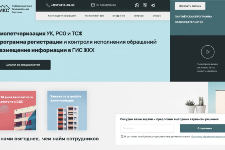 Дизайн лендинга для компании занимающейся диспетчеризацией в сфере ЖКХ