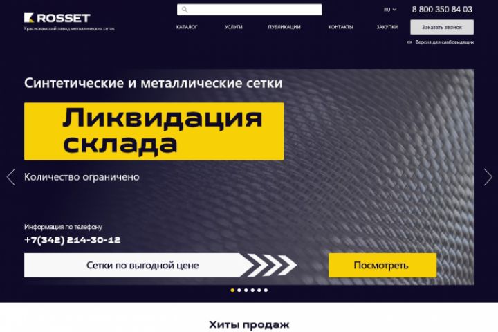 Сайт компании по производству металлических и синтетических сеток. Учебная работа