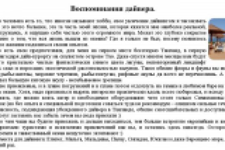 Отзывы Дайвера – Веб-контент для сайта Туристической фирмы