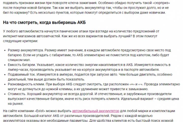 Текст для гостевой статьи интернет-магазина автозапчастей. Как выбрать АКБ, какие параметры учитывать, где приобрести АКБ.