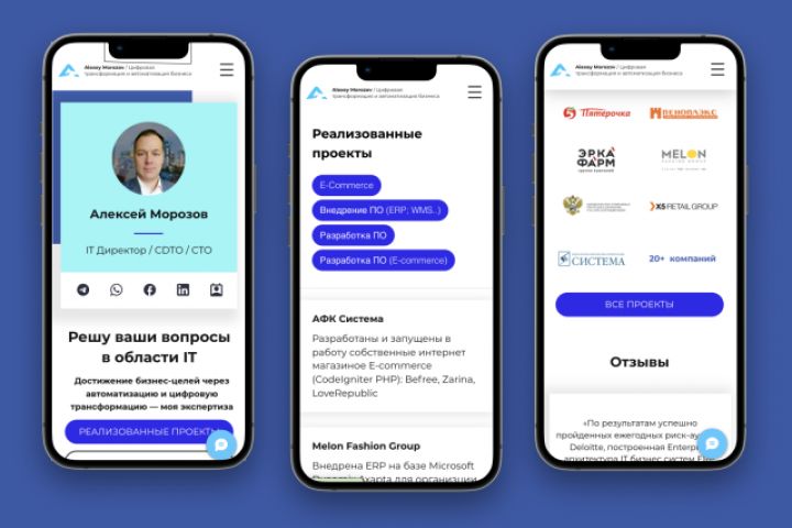 Редизайн сайта на wix (на основе шаблона выбранного клиентом) для IT Директора / CDTO / CTO. Смыслы текста, структура, дизайн, верстка на wix и подключение всех ссылок и форм.